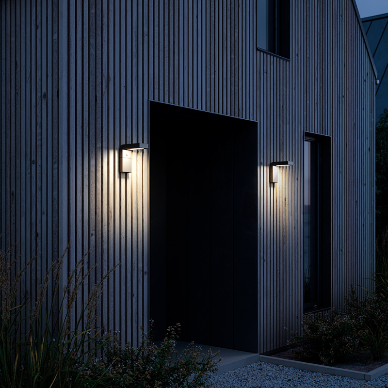 Product Code: 6N2118231003 Light source: 5W LED (Built-In) | 3000K | 400lm | PIR Sensor Materials: Plastic Dimensions: H 200mm x W 90mm x D 205mm Brand: Nordlux Alya is an outdoor wire-free, solar powered wall lamp in a modern and minimalist design. It is charged by sunlight during the day, and turns on automatically at night when detecting motion. The downwards facing light is perfect for illuminating your main entrance, driveway or other areas that require guide lighting. Easy self-installation with no electrician required. Includes a 5-year LED guarantee. Sensor reaches up to 8 meters. Rated IP44 suitable for outdoor use. Designed by Nordlux in Denmark. For trade enquiries, please contact us below. |