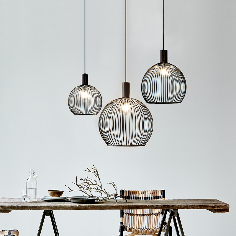 Product Code: 6N84253003 Light source: 1 x E27 60W (max) | Not Incl. Materials: Metal, Plastic Dimensions: Ø 400mm x H 455mm | 3000mm fabric cable suspension Brand: Nordlux Aver is a pendant light that breaks with tradition with its visible light bulb behind the curved metal threads delivering on both beautiful light and fascinating shadow play. Available in other sizes (price varies). Rated IP20 suitable for indoor use. Designed in Denmark by Carlo Volf. For trade enquiries, please contact us below. |