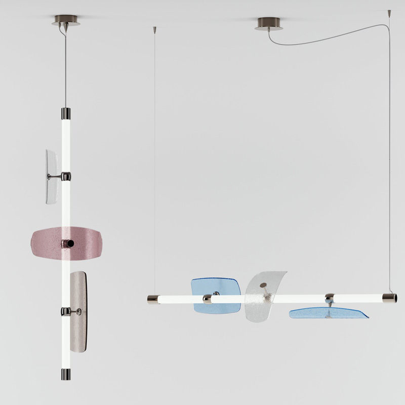 Product Code: 6I01805SO0001 Light source: 3800lm | 4000K | CRI>90 Materials: Metal, Glass Dimensions: L 1690mm x H 320mm x W 320mm | 1000mm Cable Brand: Italamp Axi is a chandelier with a 'retro-futurist' aesthetic, composed of a tubular structure in white borosilicate glass containing an LED light source. The design is interspersed with metal elements from which, extend arms whereby coloured art glass panels are fixed, gravitating around the central element. These elements have a curved and textured surface, which filters the light with plays of transparency and refraction. Rated IP20 suitable for indoor use. Customizations available on request. Dimmable 0-10V, other dimming standards available on request. Designed by Patrick Jouin iD and made in Italy. For trade enquiries, please contact us below. |