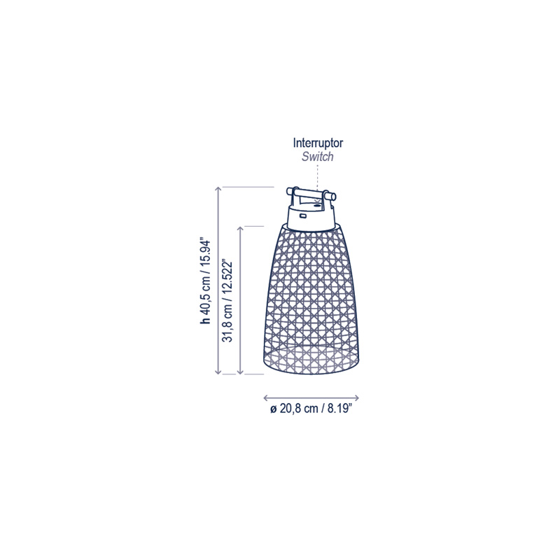 Product Code: 6B30908324163 Light source: 3W LED (Built-In) | 2700K | 460lm Materials: Stainless steel, Aluminum, Teak Wood, Synthetic Fiber Dimensions: Ø 208mm x H 405mm Brand: Bover The design intent of the Nans collection was to highlight the craftsmanship of the lampshades and to explore different ways of weaving, by combining different colours and formats to create a true Mediterranean style. Available in various sizes with either Beige, Brown or Red shades featuring coastal Blue accents and graphite brown metal ware. Rechargeable by USB with built-in 3 step dimming function. Up to 12 hours of battery life at full power. Rated IP54 suitable for outdoor use. Designed by Joana Bover and made in Spain. For trade enquiries, please contact us below. |