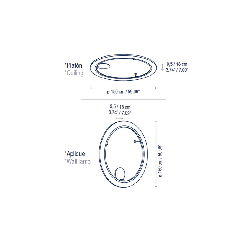 Product Code: 6B36612106190 Light source: 66W LED (Built-In) | 2700K | CRI 90 | 2910lm Materials: Aluminum, Steel, Ribbon Dimensions: Ø 1500mm x D 180mm Brand: Bover The Roda Collection is characterized by its large, cylindrical, ring-shaped shade. Its inner contour is surrounded by an aluminum ring housing a continuous circle of LEDs, emitting a uniform, filtered light. The warmth of the ribbon is highlighted by the dark ring outlining the perimeter, making these fixtures particularly cozy and lightweight, because despite their large volume, they seem weightless. Rated IP20 suitable for indoor use. Dimmable 1-10V - other versions available on request (price varies). Designed by Joana Bover and made in Spain. For trade enquiries, please contact us below. |