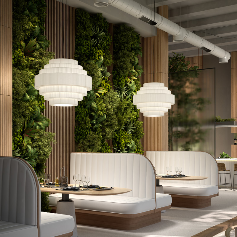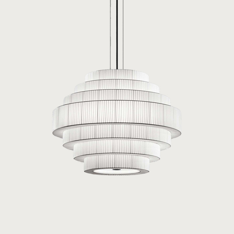 Product Code: 6B22456P618 Light source: 3 x E27 15W LED (Max) | Not Incl. Materials: Iron, Glass, Ribbon Dimensions: Ø 600mm x H 460mm | 1950mm Max Hang Height Brand: Bover Elegant yet architectural, the MOS Pendant balances geometry and softness with its tiered design and hand-wrapped ribbon finish. Inspired by classic Art Deco forms and reinterpreted through a contemporary lens, it creates a striking focal point—whether used singularly or in clusters. Ideal for hospitality, dining, or double-height spaces where form meets ambience. Available in Cream or White Ribbon, as well as larger sizes (price varies). Rated IP20 suitable for indoor use. Dimmable with dimmable globes. Designed by Joana Bover and made to order in Spain. For trade enquiries, please contact us below. RELATED ITEMS