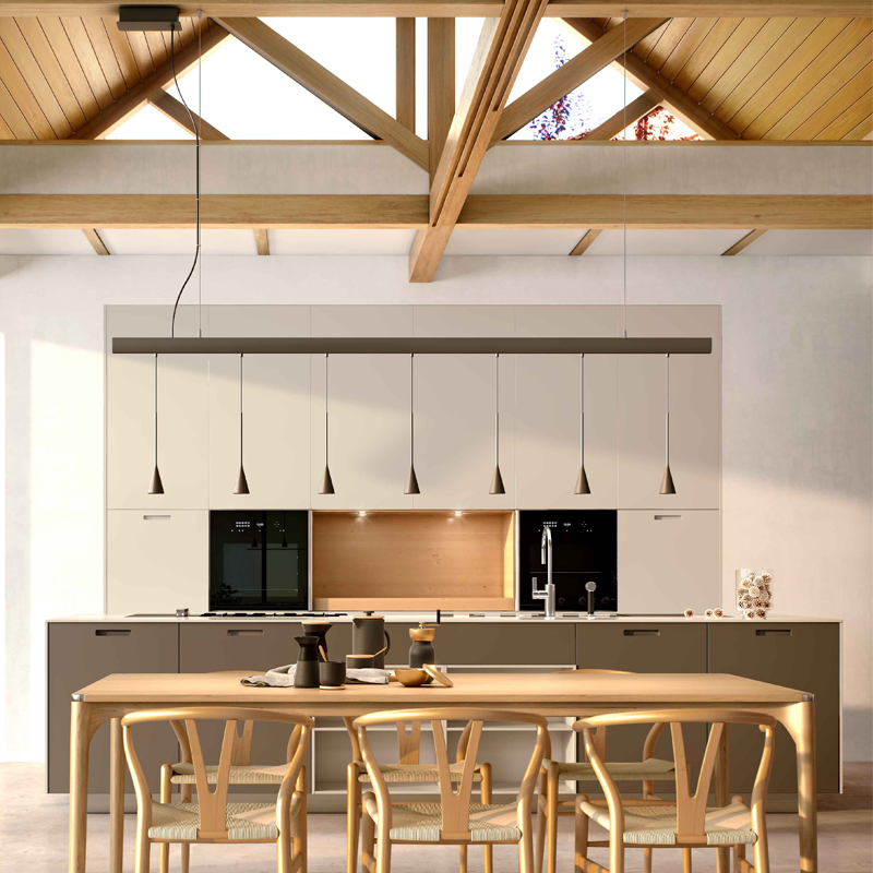 Product Code: 6B35712219056 Light source: 22.4W LED (Built-In) | 2700K | 2604lm Materials: Iron, Aluminium Dimensions: Ø 50mm x H 750mm x L 1820mm | Max Hang Height 3800mm Brand: Bover Skybell is an extensive system of light structures designed to adapt to any type of application. The main characteristic being freedom due to the combined variations available. The individual pendant itself is available in 4 sizes and in an assortment of arrangements. Dimmable 1-10V, DALI, PUSH. Rated IP20 suitable for indoor use. Designed by Estudi Manel Molina for Bover and made in Spain.