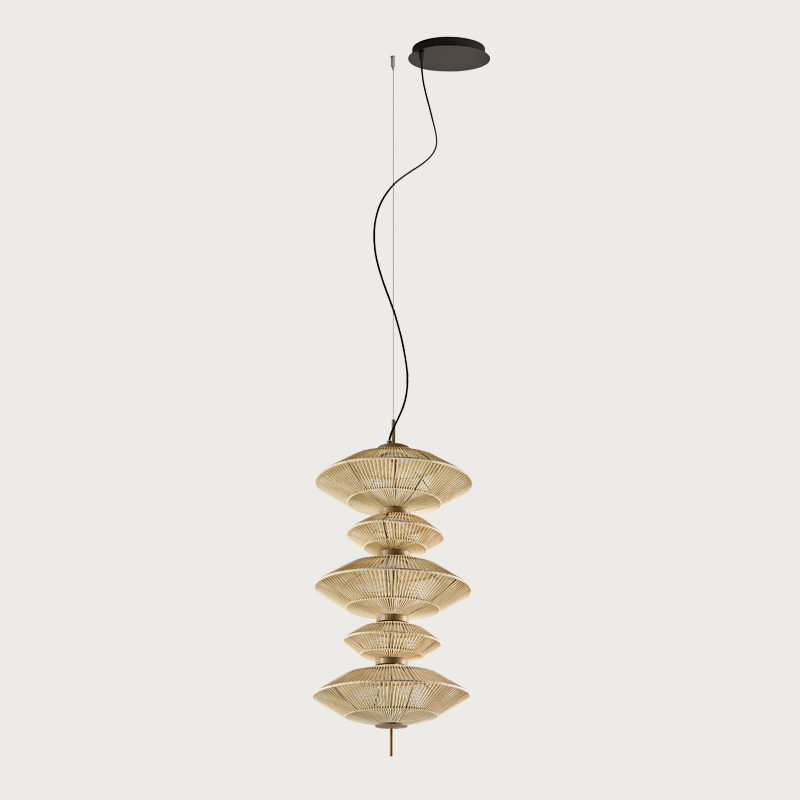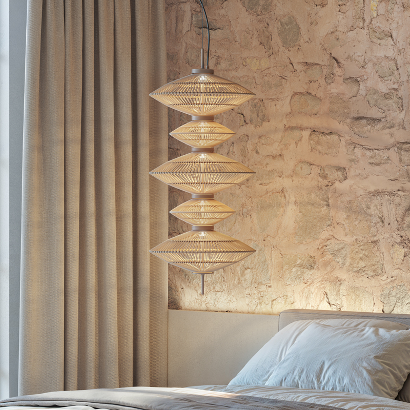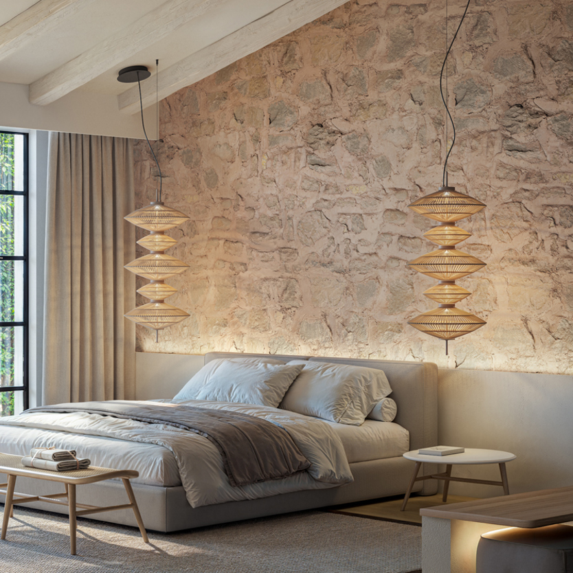Product Code: 6B11710234356 Light source: 36W LED | 2400K | 1170lm | CRI90 Materials: Aluminum, Steel, Cotton Dimensions: Ø 420mm x H 960mm | 2000mm Suspension Cable Brand: Bover The Yuyun series introduces a soft, vertical lighting statement for double-height spaces, stairwells, and feature corners. Each pendant is handwoven in continuous cotton thread with a warm beige finish, offering gentle texture and a refined glow. With two shade sizes and fully customisable compositions, Yuyun allows you to create anything from a simple drop to a dramatic multi-tiered feature - tailored perfectly to your space. Rated IP20 suitable for indoor use. Dimmable with TRIAC, DALI or 0-10V (pricing varies). Designed by Joana Bover and made in Barcelona. For trade enquiries, please contact us below. |