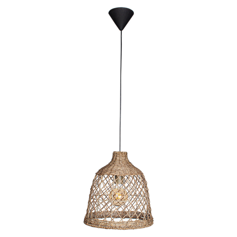 Product Code: 4B4201760-5507 Light source: Ø 340mm x H 350mm | 1200mm Cable Suspension Materials: Jute, Plastic Dimensions: 1 x E27 15W LED (max) | Not Incl. Brand: By Rydens This handmade pendant light adds a unique, warm feeling to your home and brings a sense of nature into your house.