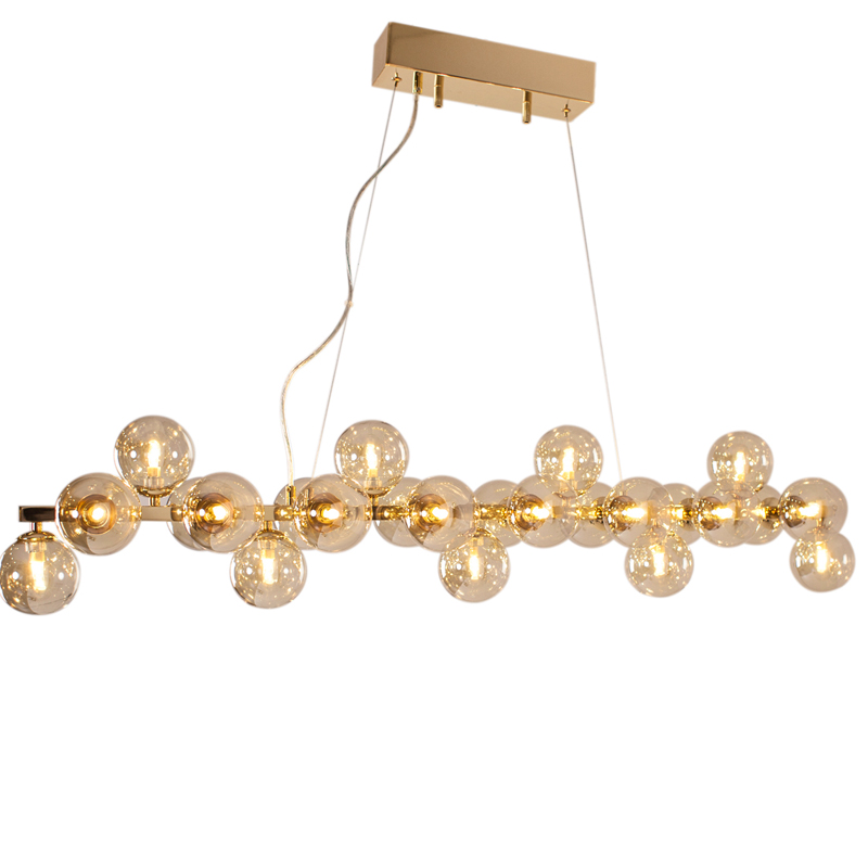 Splendor Bar is a sensational pendant light made up of 25 glass spheres surrounding a precious metal frame. Available in either Amber Glass with Gold Metal or Smoked Glass with Chrome Metal. For trade enquiries, please contact us below. RELATED ITEMS