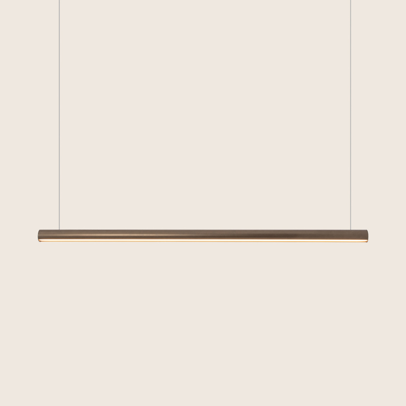 Product Code: 4Z22207 Light source: 45W LED | 3000K | 6300lm | CRI80 Materials: Aluminium, Polycarbonate Dimensions: Ø 53mm x L 1410mm | 2088mm Max Hang Height Brand: Zambelis The Calliope Pendant combines a refined linear profile with a warm bronze finish, creating a soft, elongated glow ideal for dining spaces, kitchen islands and contemporary interiors. Minimal and elegant, it offers a modern Greek-inspired accent with a timeless architectural presence. Rated IP20 suitable for indoor use. Non-Dimmable. Includes 3 year warranty. Designed by Zambelis in Greece. For trade enquiries, please contact us below. RELATED ITEMS