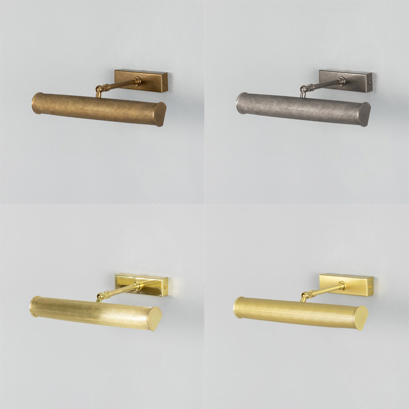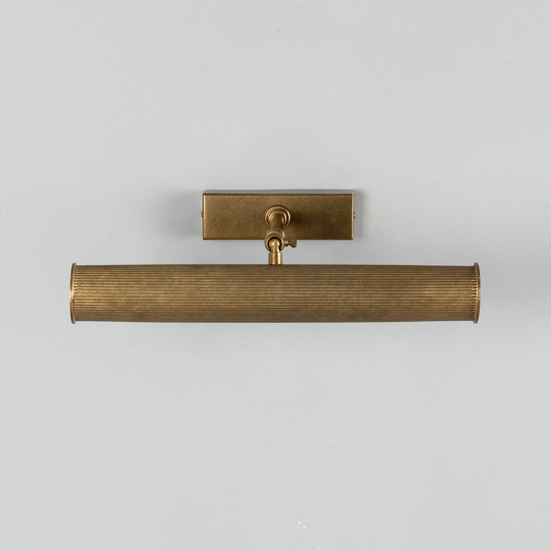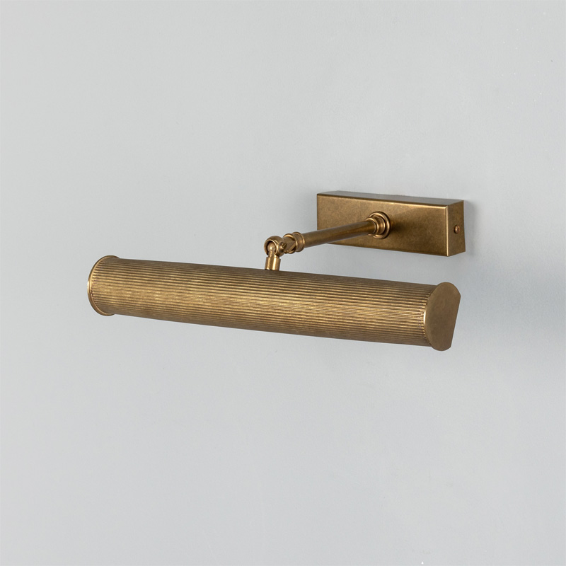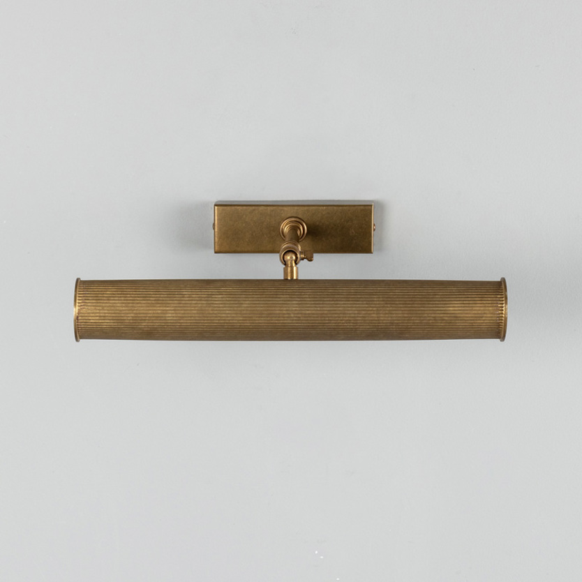 Product Code: 6MMPL028ANTBRS Light source: 2 x G9 6.5W (Max) | Not Incl. Materials: Brass Dimensions: L 355mm x H 92.5mm x D 240mm Brand: Mullan The Cambridge Adjustable Picture Light brings classic refinement to artwork and feature walls. Crafted in reeded brass, its slender profile casts an even, focused glow while the adjustable arm allows precise light direction. Ideal for illuminating paintings, prints or shelving with a timeless, gallery-inspired finish. Available in various metal finishes. Rated IP20 suitable for indoor use. Dimmable with dimmable globes. Handcrafted by Mullan Lighting in Ireland. This product features real brass which is considered a living material, some finishes will patina over time. For trade enquiries, please contact us below. RELATED ITEMS