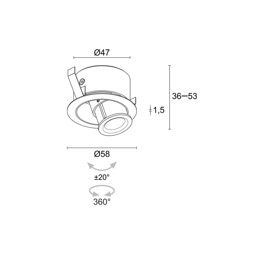 Product Code: 4LCM180010005R1E Light source: 2.5W LED (Built-In) | 24V Materials: Aluminium, TIR Lens Dimensions: Ø 58mm x D 53mm Brand: Luce & Light Cameo is an award-winning line of recessed downlights intended for plasterboard false ceilings or niches in residential contexts. They are available with fixed optics, optics tiltable ±20° or with optics tiltable ±20° plus manual zoom lens. The entire Cameo range uses Power LED or Power LED High Intensity depending on the model; all the light sources have a high colour rendering index of CRI >90. Colour Temperature: 2700K | 3000K | 4000K Finish: Black | White Optics: optical range 8° — 40° tiltable ±20° Click here for full specification and to build your product. Designed by Luce & Light and made to order in Italy. For trade enquiries, please contact us below. |