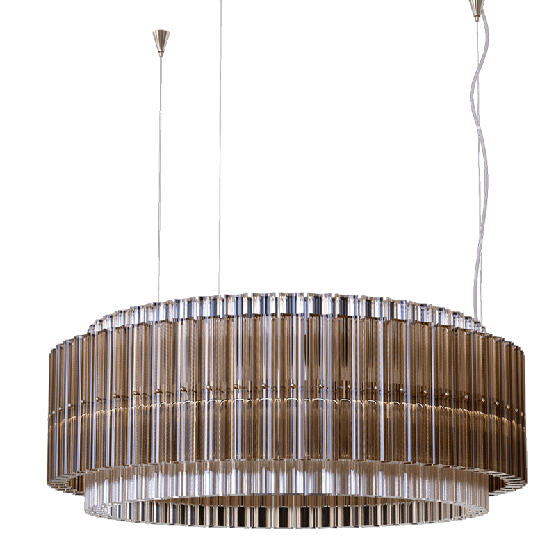 Product Code: 6I00729090002 Light source: 1 x 116W | 3000k | 7400lm | 230V Materials: Metal, Glass Dimensions: Ø 900mm x H 300mm Pendant made of clear and teak glass quadrihedrons, metal with chrome finish. Available in different glass colours. IP20 Designed by Stefano Traverso For trade enquiries, please contact us below. |