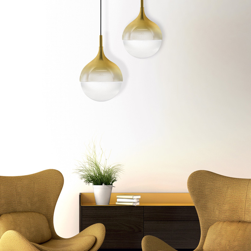 Product Code: 6I040330S0003 Light source: LED 16W (max) Materials: Metal, Glass Dimensions: H 500mm x Ø 330mm | Suspension 1000mm Brand: Italamp Interior pendant light in metal with light gold or white finish and blown glass diffuser with faded shiny gold or faded white finish. Available in other applications. Designed by Koz, Susani Design & ITALAMP Studio and made in Italy. Dimmable.