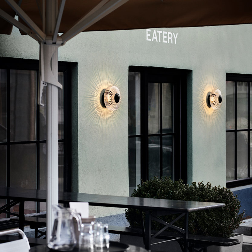 Product Code: 8D23041 Light source: 8W LED (Built-In) | CRI90+ | 2700K | 600lm | 240V Materials: Aluminium, Glass Dimensions: Ø 260mm x D 170mm Brand: Design By Us The New Wave Optic Wall Outdoor lamp is designed with mouth-blown rippled glass and black coated Aluminium front. It is designed to fit a variation of different facades and constellations, taking designer outdoor lighting to the next level. Rated IP65 suitable for outdoor use. C4 Corrosion Resistance (High). Designed in Denmark. For trade enquiries, please contact us below. |