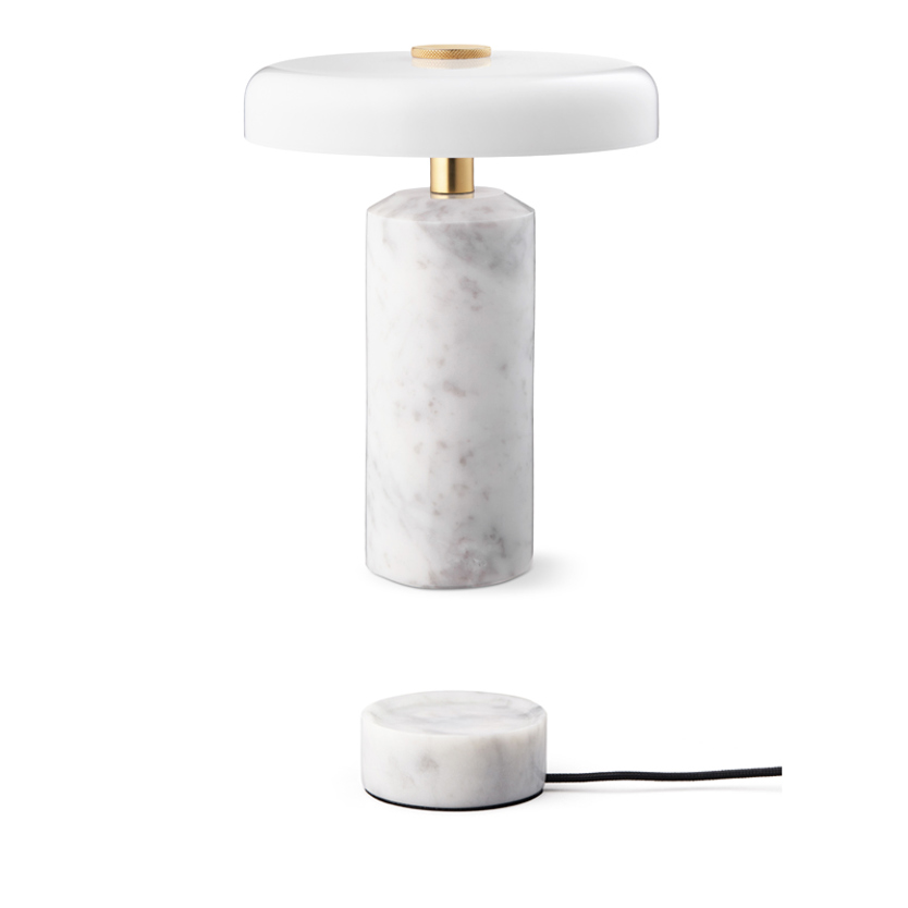 Product Code: 8D21204 Light source: 2W LED (Built-In) | 3000K | 3-Step Dimming Materials: Marble, Glass, Metal Dimensions: Ø 170mm x H 210mm | Base Ø 70mm Brand: Design By Us The sculptural design with polished marble and mouth blown glass gives the Trip Portable Lamp a particular exclusive look. There is a touch dimmer on top, which can be set at 3 brightness levels and the marble charging dock serves as an extension of the lamp itself. Available in various marble and glass colours that can be mixed and matched. Up to 14 hours of battery life on maximum brightness, longer on lower settings. Supplied with 1.5m USB-C to USB Cable, plug pack not included. Rated IP20 suitable for indoor use. Designed in Denmark. This product features natural materials (marble) and the exact colour and texture of each lamp may vary. For trade enquiries, please contact us below. |