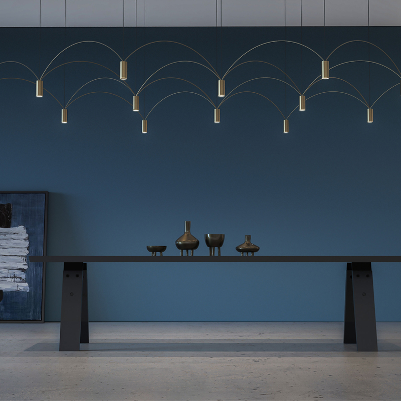 Product Code: 6FF65 A11 LR 02 Light source: 6 x 7W LED (Built-In) | 3000K | 5520lm Materials: Aluminium, Iron Dimensions: H130mm x W 1055mm x D 2055mm | 2000mm Cable Suspension Brand: Fabbian Inspired by architectural elements, Dome is a modular suspension lighting system in which the body of each lamp is connected to the others by an arch, creating a series of vaults with endless possibilities. The light source is available in either 2700K or 3000K with a 15° or 45° beam angle. Available in various modular sizes and configurations, in Black or Gold (price varies). Dimmable with DALI, PUSH, 1-10V. Rated IP20 suitable for indoor use. Designed by Alessandro Di Prisco for Fabbian and made in Italy. For trade enquiries, please contact us below. |