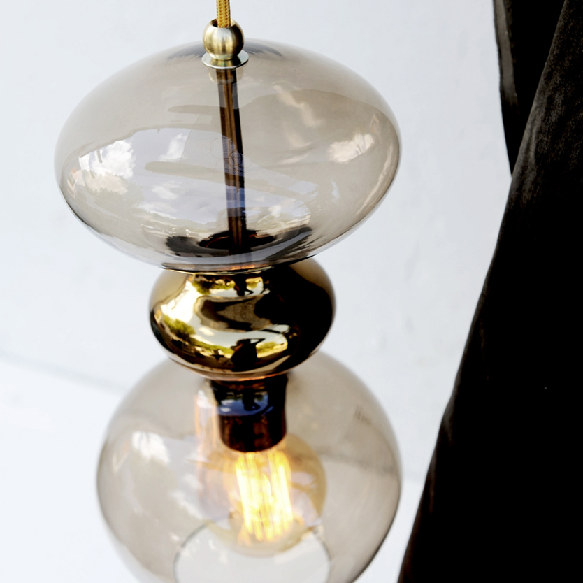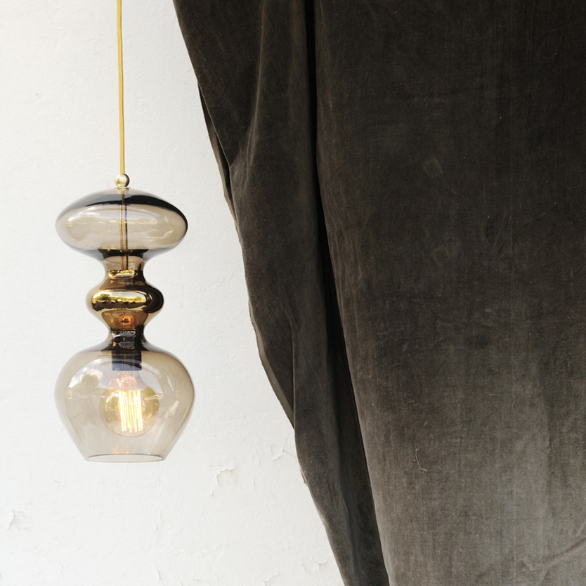 A blend of mouth-blown glass and metal finishes in a variety of colours.
