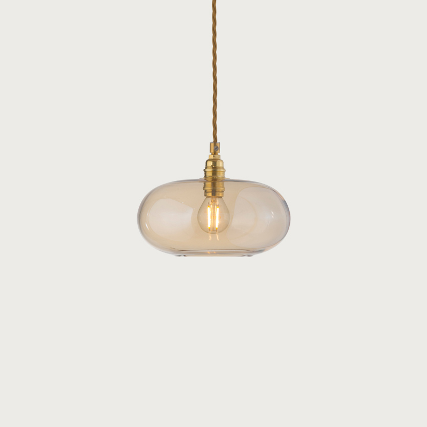 Product Code: 8ELA101772-1 Light source: 1 x E14 25W (Max) | Not Incl. Materials: Glass, Metal Dimensions: Ø 210 mm x H 140mm | 2000mm Fabric Cable Suspension Brand: Ebb & Flow With its wide shape and shallow height, Horizon invites you to look far and gaze into the unknown. A perfect pendant light for applications where you need to fill spaces without obstructing views. Available in a variety of glass colours and sizes, with either Gold or Silver cable and metalware. Rated IP20 suitable for indoor use. Designed by Susanne Nielsen in Denmark and hand-made in Europe. This product features mouth-blown glass and the exact size, colour and texture of each piece may vary. For trade enquiries, please contact us below. RELATED ITEMS