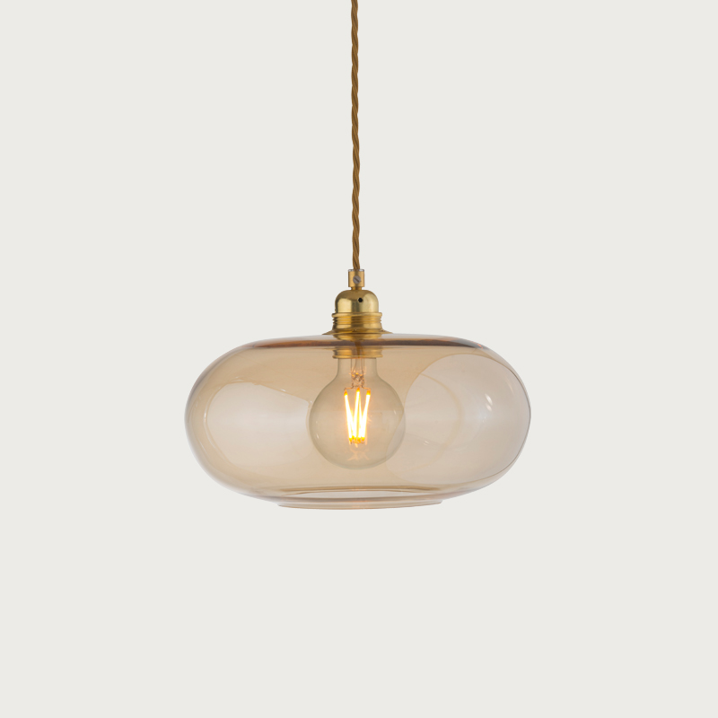 Brand: Ebb & Flow With its wide shape and shallow height, Horizon invites you to look far and gaze into the unknown. A perfect pendant light for applications where you need to fill spaces without obstructing views. Available in a variety of glass colours and sizes, with either Gold or Silver cable and metalware. Rated IP20 suitable for indoor use. Designed by Susanne Nielsen in Denmark and hand-made in Europe. This product features mouth-blown glass and the exact size, colour and texture of each piece may vary. For trade enquiries, please contact us below. RELATED ITEMS