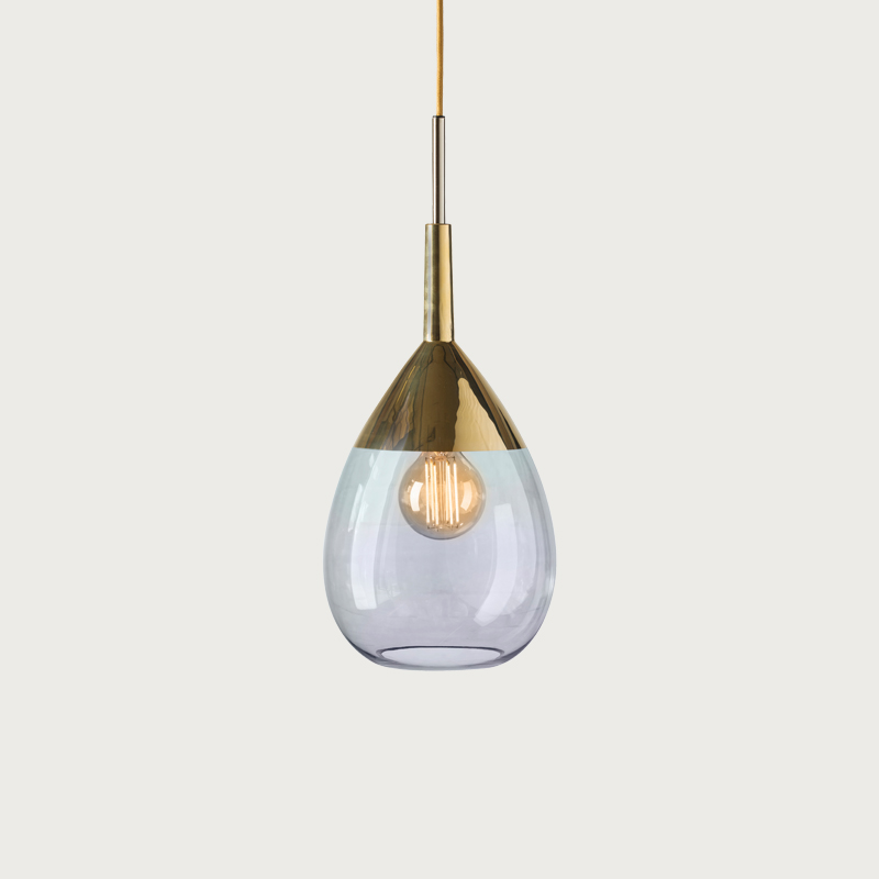 A blend of mouth-blown glass and metal finishes in a variety of colours.