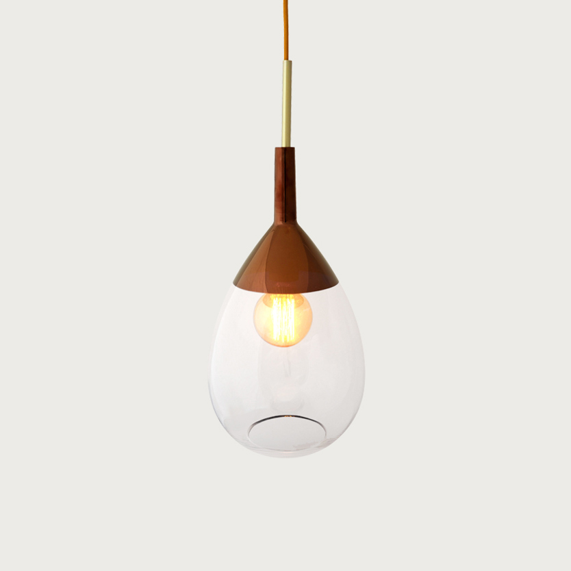 A blend of mouth-blown glass and metal finishes in a variety of colours.