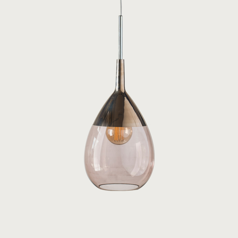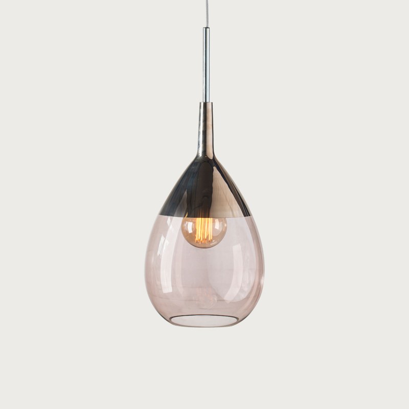 A blend of mouth-blown glass and metal finishes in a variety of colours.