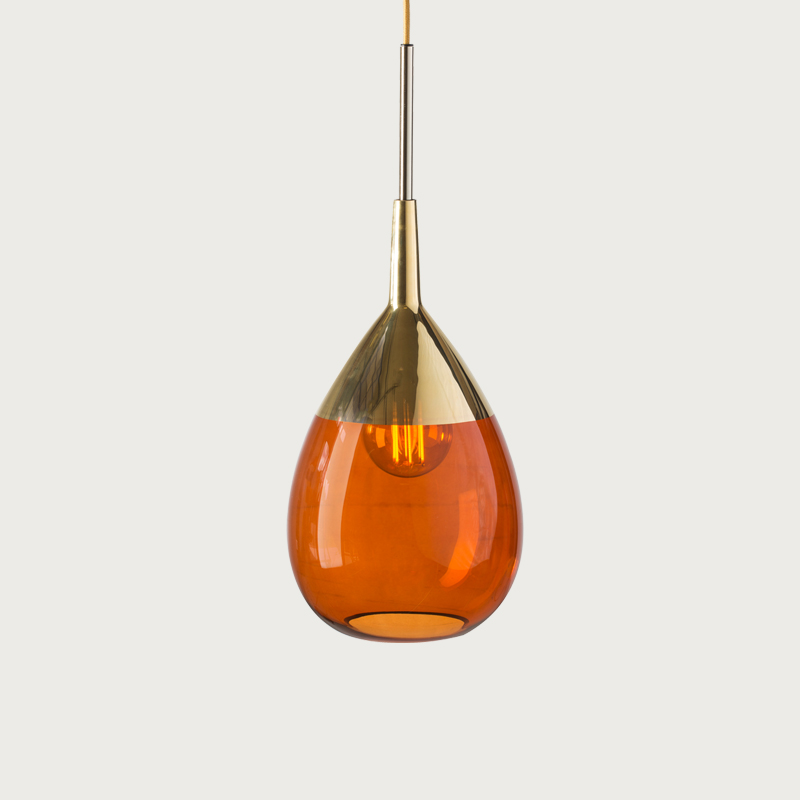 A blend of mouth-blown glass and metal finishes in a variety of colours.