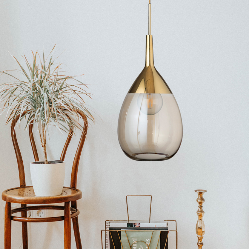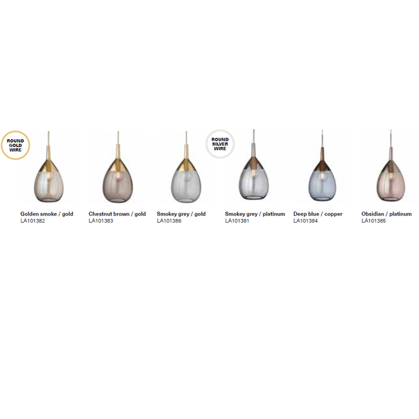 Product Code: 8ELA101382 Light source: 1 x E27 25W LED (max) | Not Incl. Materials: Glass and metal Dimensions: Ø 310 mm x H 700mm | 2000mm fabric cable suspension