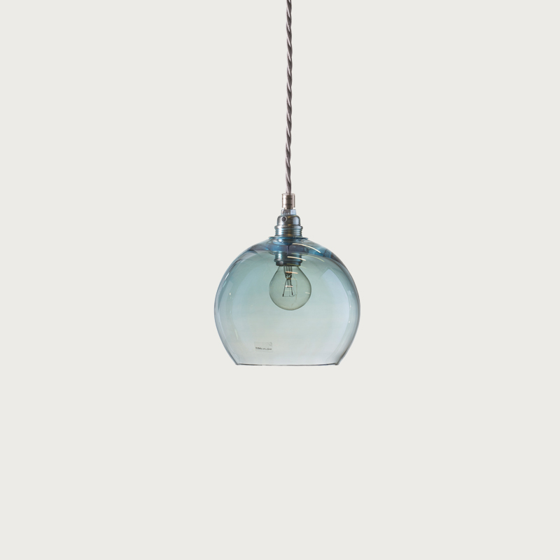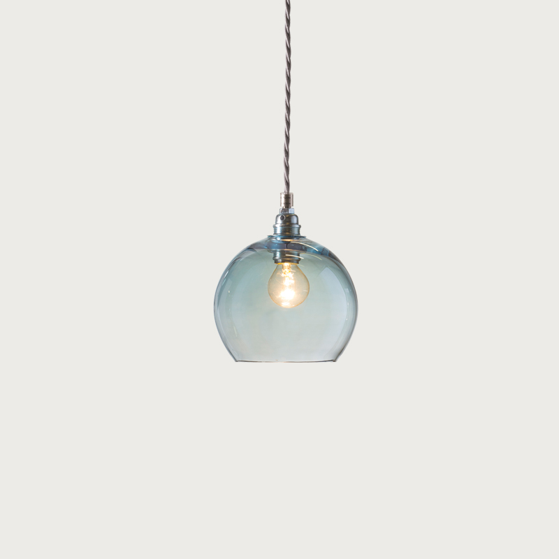 Product Code: 8ELA101545 Light source: 1 x E14 25W (Max) | Not Incl. Materials: Glass, Metal Dimensions: Ø 155 mm x H 150mm | 2000mm Fabric Cable Suspension Brand: Ebb & Flow Being the first EBB & FLOW design, Rowan continues to be a classic, timeless design that works well in almost any space, thanks to its simple spherical shape and elegant twisted fabric cable. Available in a variety of glass colours and sizes, with either Gold or Silver cable and metalware. Rated IP20 suitable for indoor use. Designed by Susanne Nielsen and hand-made in Europe.