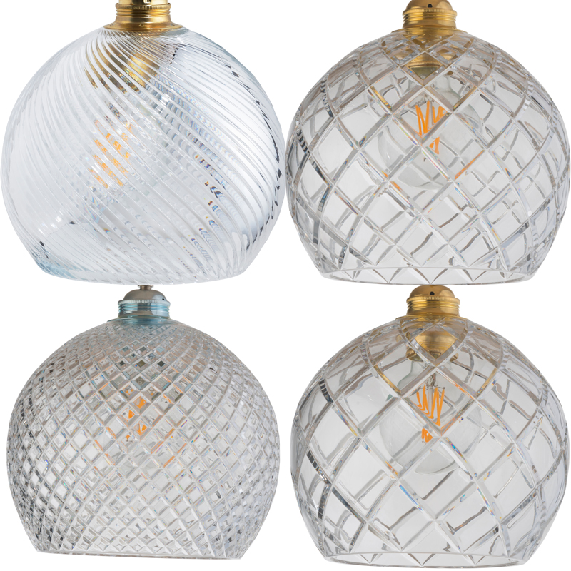 A blend of mouth-blown glass and metal finishes in a variety of colours.