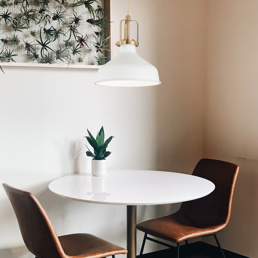 Product Code: 8I238135 Light source: 1 x E27 60W (max) | Not incl. Materials: Metal Dimensions: Ø 330mm x H 270mm | 2100mm Max Hang Height Brand: Ideal Lux Modern, industrial style pendant light featuring a metal shade available in either a varnished matt white or black. Details with satin gold finish and braided gold fabric suspension cable. Rated IP20 for indoor use only. Dimmable.Designed in Italy. For trade enquiries, please contact us below. |