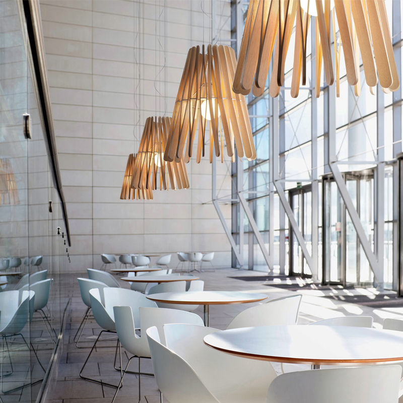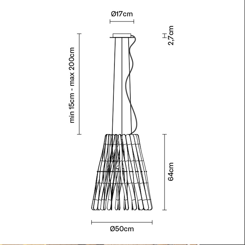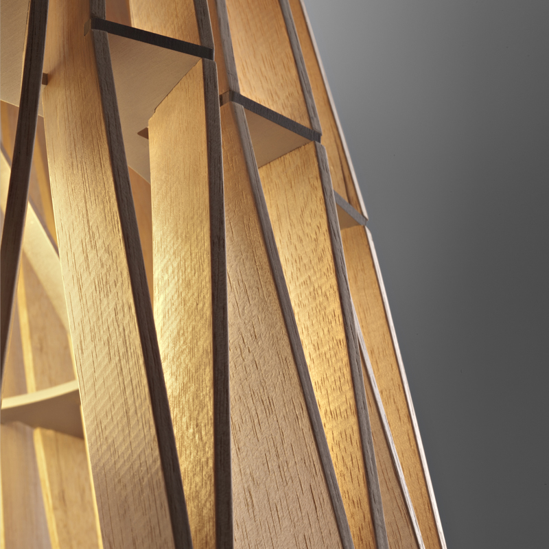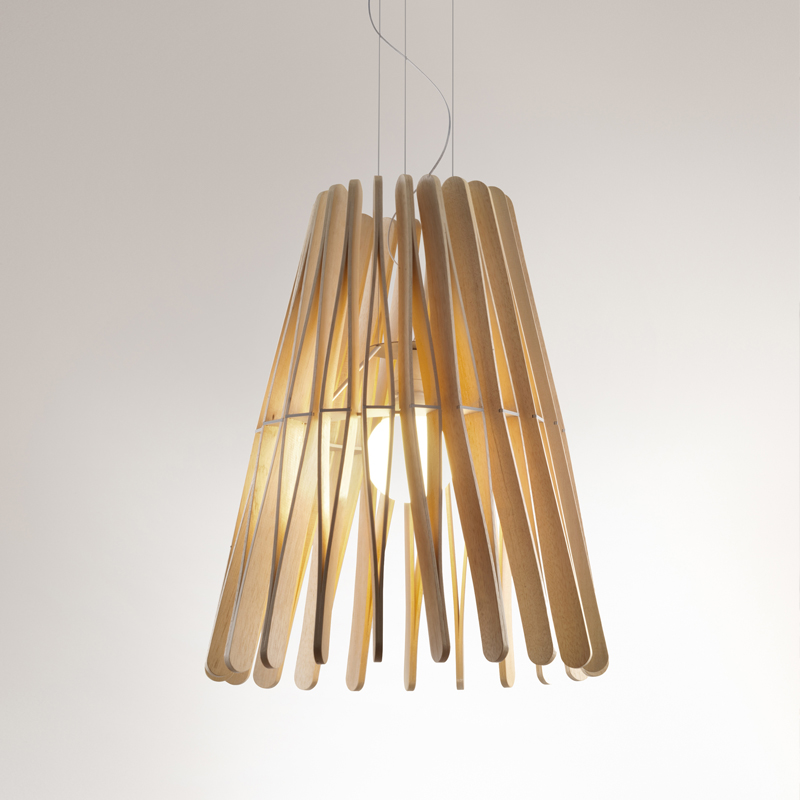 Product Code: 6FF23A03 69 Light source: 1 x E27 22W LED (max) | Not Incl. Materials: Wood, Metal Dimensions: Ø 500mm x H 640mm | 2000mm Cable Suspension Brand: Fabbian Stick stems from an Ayous wood module, the shape of which is inspired by that of a pair of pliers: two bent elements stretched apart by a central support. The light is diffused through an ornate weave of slats in Ayous, a light-coloured wood found in Africa, to create a play on shadows and a graphic, repetitive pattern. Rated IP20 suitable for indoor use. Dimmable with compatible globe. Designed by Matali Crasset and made in Italy. For trade enquiries, please contact us below. |