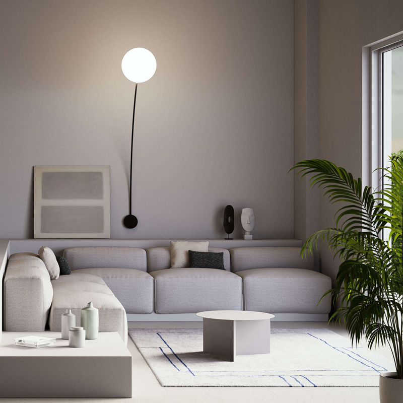 Product Code: 6I02395AP0002 Light source: 1 x E27 14W LED (Max) | Not Incl. Materials: Metal, Glass Dimensions: H 1950mm x W 350mm x D 1100mm Brand: ITALAMP Filo is a conceptual project, which is express thanks to the minimalism of a white glass sphere held in an elastic balance by a metal bar. The product draws its own space with a minimal graphic sign and the white glass diffuser creates a pleasant lighting atmosphere. Available in Brushed Light Gold or Matt Black (price varies). Rated IP20 suitable for indoor use. Dimmable with compatible globe. Designed by Defne Koz for ITALAMP and made to order in Italy. For trade enquiries, please contact us below. |