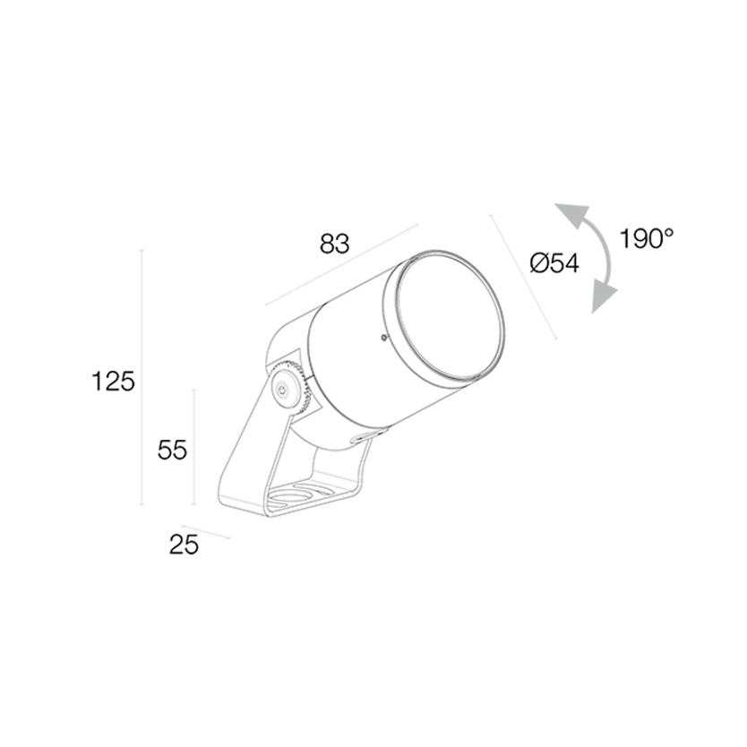 Product Code: 4LGN240115R1E Light source: 1 x 7W | 3000k | 113lm | 24V Materials: Anticorodal aluminium Dimensions: Ø 54mm x D 83mm Brand: Luce and Light Projector for outdoor applications. Body is aluminium in either stainless steel, anthracite, jasper green, cor-ten, black anodized, white, grey finishes; RAL finish on request. Beam option available is optical range 9˚ ÷ 36˚. Power supply 24V. IP66 Accessories not included Designed and made in Italy