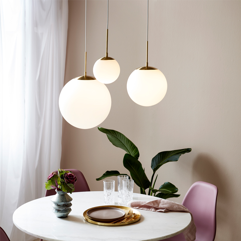 Product Code: 6N2010563035 Light source: 1 x E27 25W (Max) | Not Incl. Materials: Metal, Glass Dimensions: Ø 250mm x H 250mm | 2000mm Suspension Cable Brand: Nordlux The Grant series pairs opal-white mouth-blown glass with a sleek brass frame, balancing simplicity and elegance in a timeless design. Each handcrafted glass dome is unique, adding a decorative touch and warm glow to any space. Available in 3 different sizes (price varies). Rated IP20 suitable for indoor use. Dimmable with dimmable globe. Designed by Nordlux Denmark. For trade enquiries, please contact us below. RELATED ITEMS