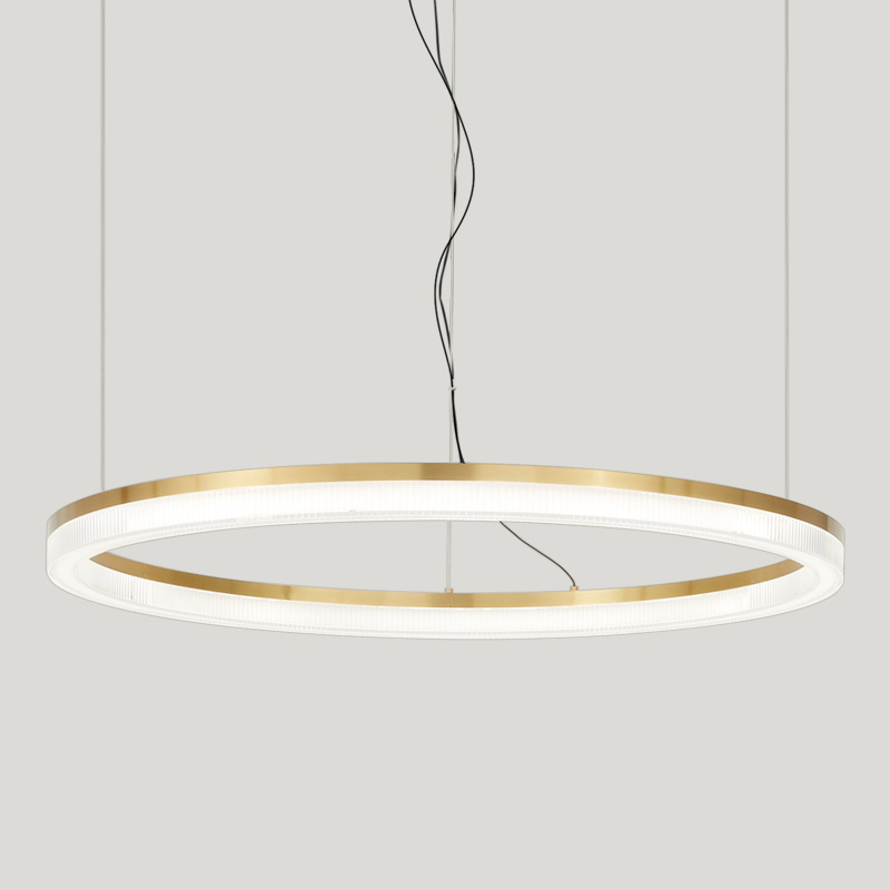 Product Code: 8I314921 Light source: 30W LED (Built-In) | 3000K | 3000lm | Non-dim Materials: Metal, Acrylic Dimensions: Ø 800mm x H 50mm | 2050mm Max Hang Height Brand: Ideal Lux The Crown Pendant features a sleek brass-finished ring that emits a soft, warm glow, making it a striking focal point for modern interiors. Its minimalist design blends elegance with functionality, perfect for dining areas, living spaces, or office environments. Also available in other sizes (pricing varies). Rated IP20 suitable for indoor use. Non-dimmable. Design by Ideal Lux in Italy. For trade enquiries, please contact us below. |