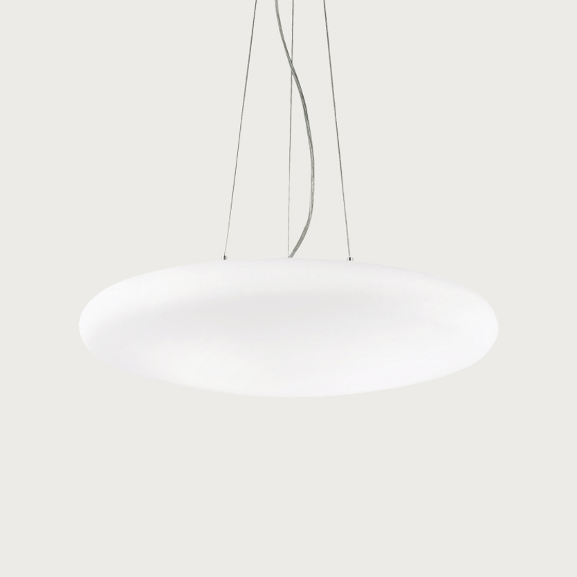 Product Code: 8I032009 Light source: 3 x E27 42W (Max) | Not Incl. Materials: Metal, Glass Dimensions: Ø 500mm x H 145mm | 2145mm Max Hang Height Brand: Ideal Lux Elegant and understated, the Smarties pendant by Ideal Lux features a soft, organic form crafted from white blown glass. Its diffused glow creates a serene atmosphere, making it ideal for dining rooms, living spaces, or modern commercial interiors. Rated IP20 suitable for indoor use. Also available in other sizes and models (pricing varies). Dimmable with dimmable globes. Designed by Ideal Lux in Italy. For trade enquiries, please contact us below. RELATED ITEMS