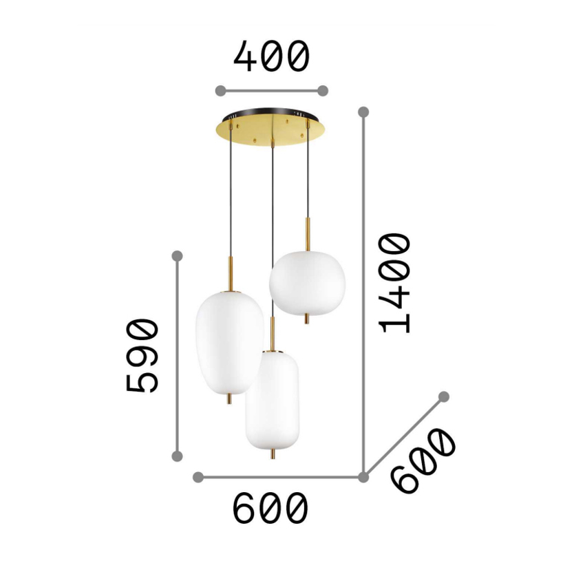 Product Code: 8I224541 Light source: 60W LED (Built-In) | 3000K | 5300lm | Non-Dimmable. Materials: Metal, Glass Dimensions: Ø 600 | Max Hang Height 1400mm Brand: Ideal Lux This 3-light pendant combines satin brass and white blown glass resulting in an elegant and stylish feature pendant light. The built-in LED provides ample light while being softened and evenly diffused by the glass shades. Rated IP20 suitable for indoor use. Designed in Italy. SALE PRICE WHILE STOCKS LAST - X1 ONLY For trade enquiries, please contact us below. |