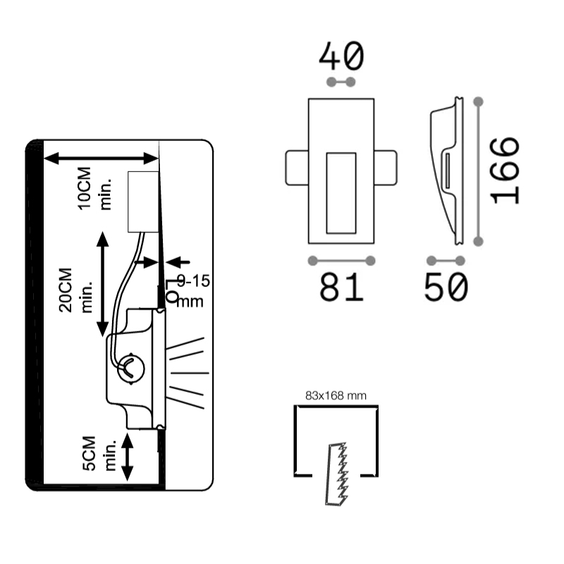 Product Code: 8I249827 Light source: 1W LED (Built-In) | 3000K | 55lm | Non-dim Materials: Plaster, Steel Dimensions: H 166mm x W 81mm x D 50mm Brand: Ideal Lux This plaster-set recessed step light is designed to blend seamlessly into your walls, offering a sleek, modern lighting solution for stairs and hallways. Its minimalist design ensures it remains unobtrusive while providing practical, low-level illumination to enhance safety and ambience. Features asymmetrical light output. Also available in other shapes and sizes (pricing varies). Rated IP20 suitable for indoor use. Non-dimmable, power supply included. Design by Ideal Lux in Italy.