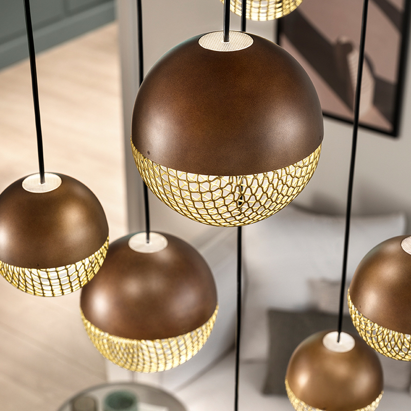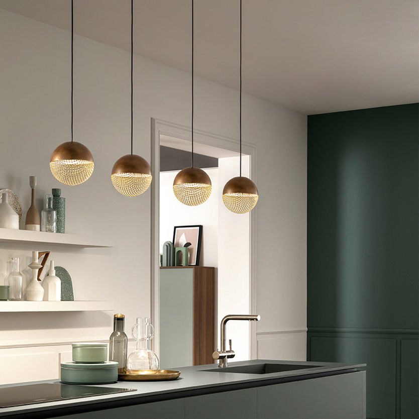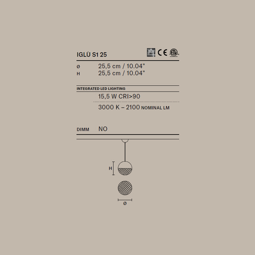 Product Code: 2MIGLU S1 25 Light source: LED 15.5W (Integrated) | 3000K | CRI 90 | 2100lm Materials: Metal Dimensions: Ø 255mm | 1500mm Suspension Cable Brand: Masiero Iglu is an intuition born from observing the perfection of the sphere, transformed into a perfect, recognisable and unique shape by woven mesh that creates a pattern of light and shadow, transforming the metal into a luminous jewel. The collection is comprised of a series of pendants, ceiling and wall lights available in various configurations, all featuring a Bronze Patina finish with woven Gold mesh. Dimmable on request. Designed by Oriano Favaretto and made in Italy. For trade enquiries, please contact us below. |