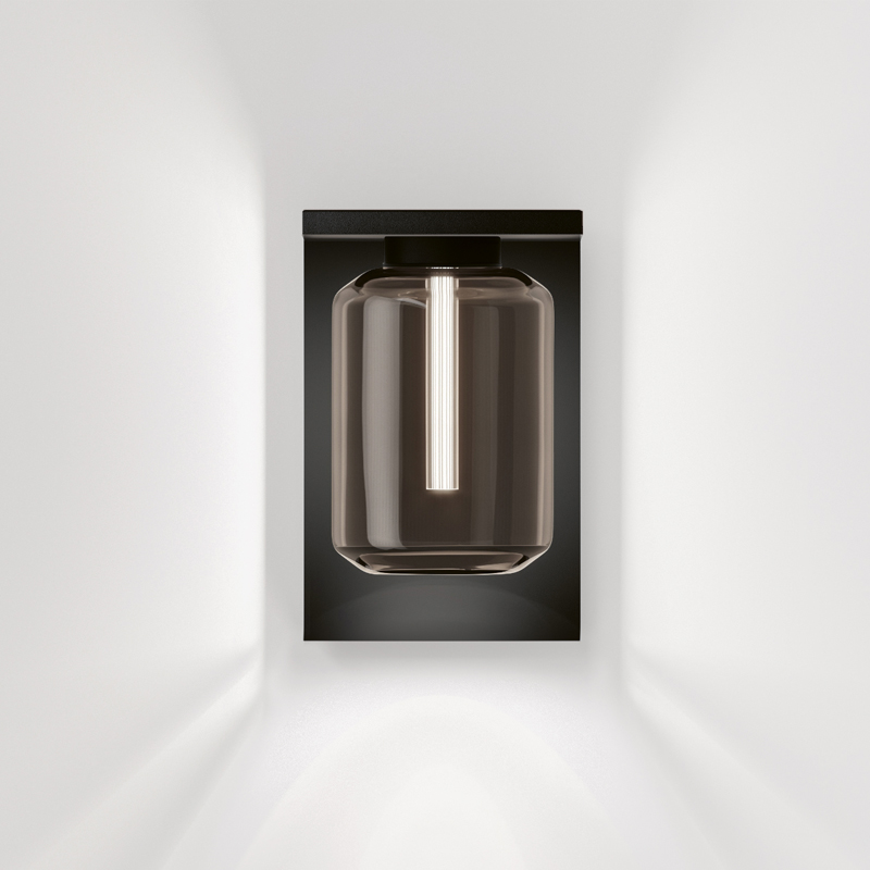 Product Code: 4I91251-xx Light source: 6W Fixed LED | 2700K | 88lm Materials: Die-cast aluminium, blown glass, acrylic Dimensions: H 219mm x W 140mm x D 170mm Brand: IP44.de The special feature of this modern interpretation of a traditional lantern is the way it combines a straight-line aluminium die-casting frame with a blown glass body. Unmistakable with the profiled, reflecting acrylic rod that seems to float in the grey tinted glass. Available in Black and Anthracite. Multi-award winning design. Rated IP65 suitable for outdoor use. Dimmable. Designed by Sebastian David Büscher and made for IP44.DE in Germany. For trade enquiries, please contact us below. |
