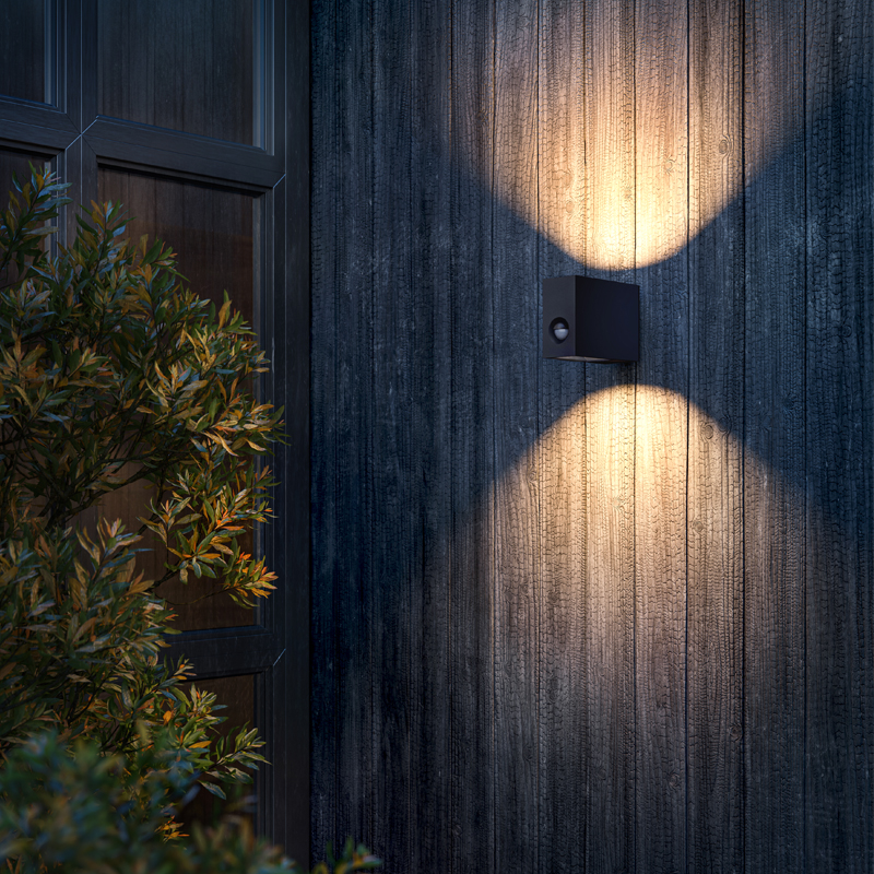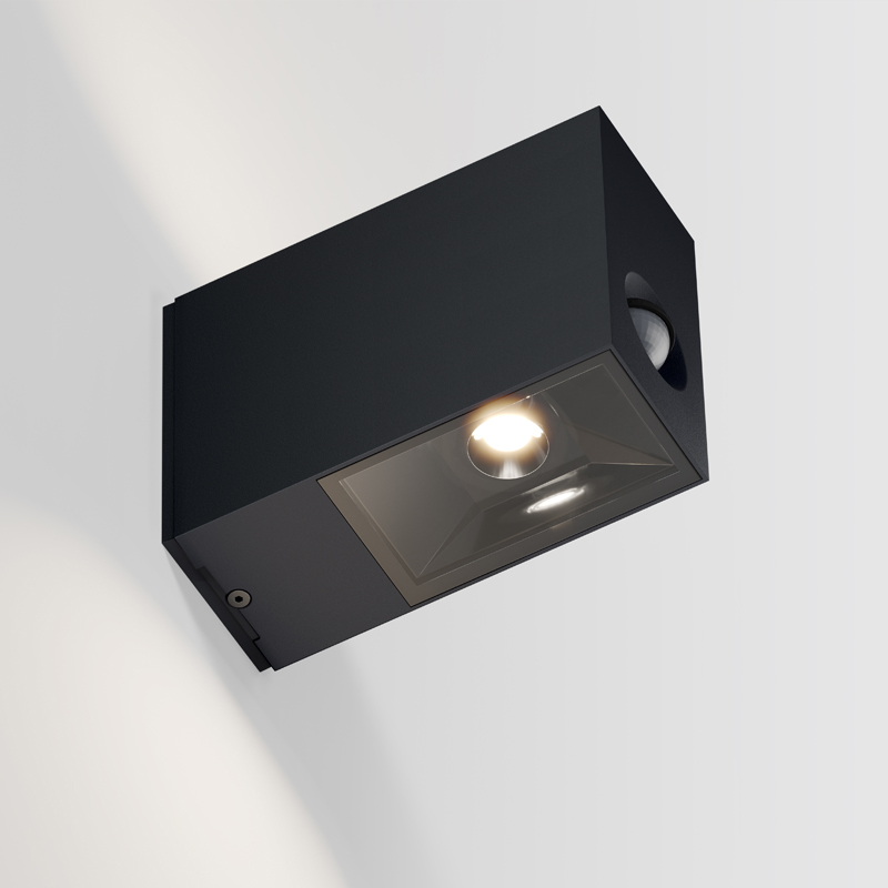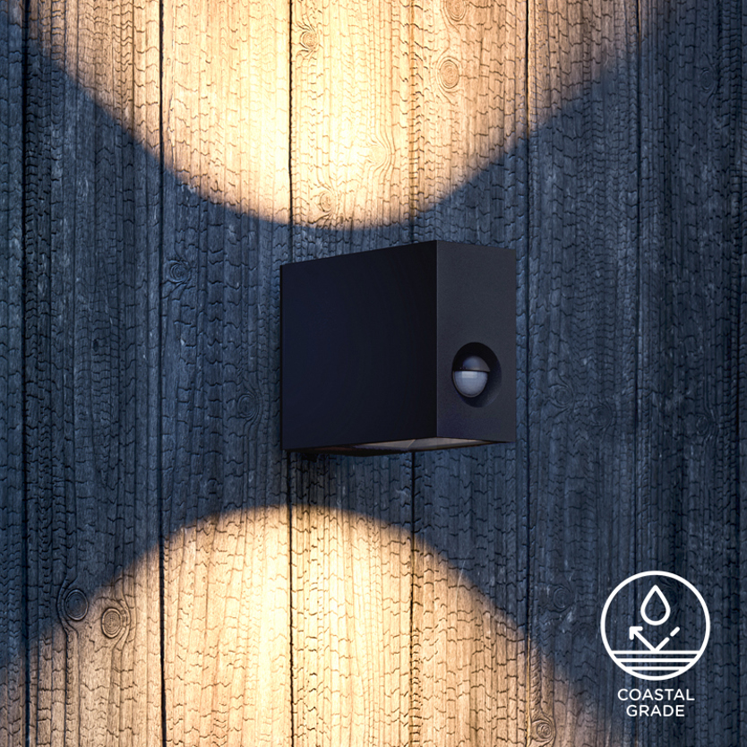 Product Code: 4I93161-BL Light source: 12W LED (Built-In) | 2700K | 630lm | 240V Materials: Aluminium, Glass Dimensions: H 120mm x W 63mm x D 160mm Brand: IP44.DE This "eye-catching" design features a stringent, die-cast Aluminium frame which houses a sleek, black reflector protected by clear safety glass. IP44.DE’s innovative sealing technology together with a wall bracket made of a special alloy makes the luminaire extraordinarily corrosion-resistant. Featuring a built-in motion sensor: 120° detection angle, 9m range, Automatic twilight function, Adjustable time from 5 sec - 8 min.