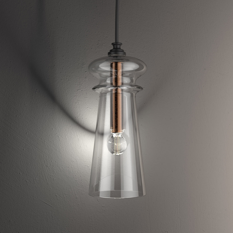 Product Code: 6I02296S10002 Light source: 1 x 4W LED | E14 | 230V Materials: Metal, Glass Dimensions: Ø 130mm x H 320mm Licio is a stunning pendant light with clear glass and a metal structure, with brushed copper and matte black metal finishes. Available in different finishes of light gold or shiny nickel. IP20