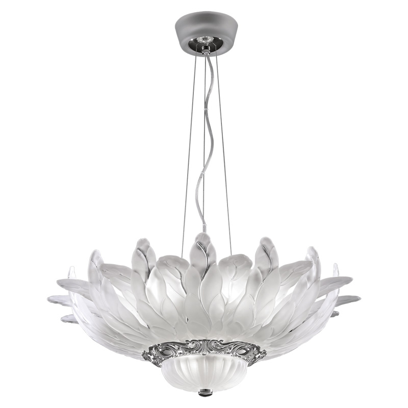 Product Code: 6I00050113004 Light source: 11 x E14 4W LED (max) | Not Incl. Materials: Metal, Glass Dimensions: Ø 700mm x H 330mm | Max Hang Height 1330mm Brand: Italamp Inspired by the touches of winter frost on leaves in northern Italy, this collection features a bouquet of satin glass leaves and and pleated bottom shade providing pleasant, diffused illumination. Available with either Shiny Nickel or Matt Gold metal detail (pricing varies). Custom finishes and sizes available on request. Rated IP20 suitable for indoor use. Dimmable with compatible globes. Designed by Roberta Vitadello and made in Italy. For trade enquiries, please contact us below. |