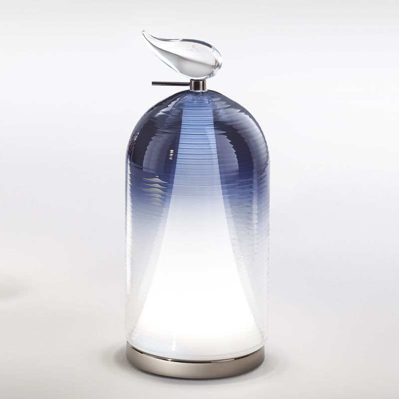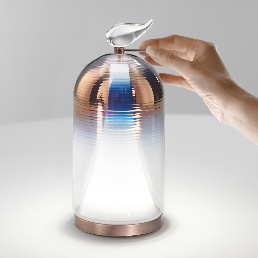 Product Code: 6I04030LP0001 or 6I4031LP0002 Light source: 2.2W LED (Built-In) | 3000K | 250lm | Touch Dim Materials: Glass, Metal Dimensions: Ø 110mm x H 260mm Brand: Italamp These compact, cordless table lamps feature a precious ribbed glass diffuser and crystal drop accent on top. Available in either faded blue (Munetta) or faded copper (Martina). Up to 8 hours of battery life and featuring a touch sensitive dimming mechanism. Re-chargeable via Micro-USB (Incl.) Sold individually. Designed by Danil De Rossi and made in Italy. Rated IP20 suitable for use indoors. For trade enquiries, please contact us below. |