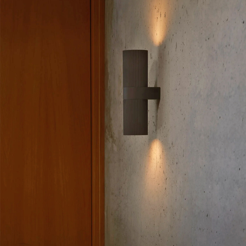Product Code: 6N2618231003 Light source: 2 x E27 15W LED (Max) | Not Incl. Materials: Aluminium, Glass Dimensions: H 355mm x W 110mm x D 155mm | Base H 50m x W 110mm Brand: Nordlux The Kyklop Ripple outdoor wall light pairs clean architectural form with subtle texture, featuring a cylindrical body detailed with vertical ripples that adds depth and visual interest. Designed for exterior walls, it illuminates both up and down - ideal for entryways, facades, and outdoor pathways with a modern Scandinavian touch. Available in Black. Rated IP54 suitable for outdoor use. Dimmable with dimmable globes. Designed by Says Who for Nordlux Denmark. For trade enquiries, please contact us below. RELATED ITEMS