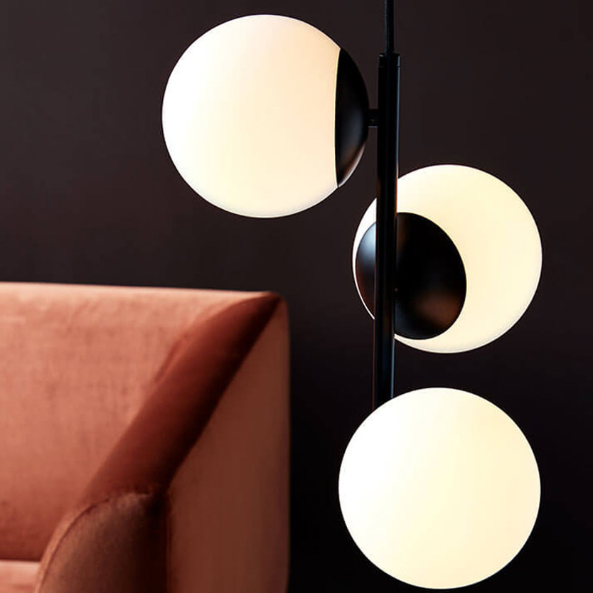 Product Code: 6N48603003 Light source: 3 x 40W | E14 Materials: Metal, glass Dimensions: H 365mm x W 320mm x Ø 150mm | 2000mm Suspension Lilly is a highly decorative series that combines simplicity and elegance in the finest possible manner. There is an ease to the interplay of the minimalist frame and the elegant, luminous glass domes where the opal white glass lets a warm and pleasant light penetrate it. Also available in a brass finish. Also available in a wall light version (price varies) IP20 Designed in Denmark Globes not included For trade enquiries, please contact us below. |