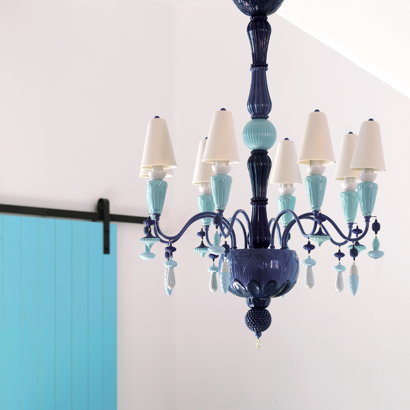 Product Code: 8L01023808 Light source: 8 x E14 9W LED (Max) | Not Incl. Materials: Porcelain, Metal Dimensions: Ø 700mm x H 1050mm | 2730mm Max Hang Height Brand: Lladro Filtered through the optic of Art Deco, the Ivy & Seed collection's geometric forms have a soft, rounded finish that counteracts its cut glass edges. This collection draws inspiration from seeds, fresh water and warm light resulting in pieces adorned with bulbs, leaves, seeds and petals. Available in various colours and patterned porcelain matt-white shades (pricing may vary). Rated IP20 suitable for indoor use. Dimmable with dimmable globes. Designed by Dept. Diseño y Decoración for Lladro and made in Spain. Please note that porcelain products are handmade and the exact size, colour and texture of each piece may vary. For trade enquiries, please contact us below. |