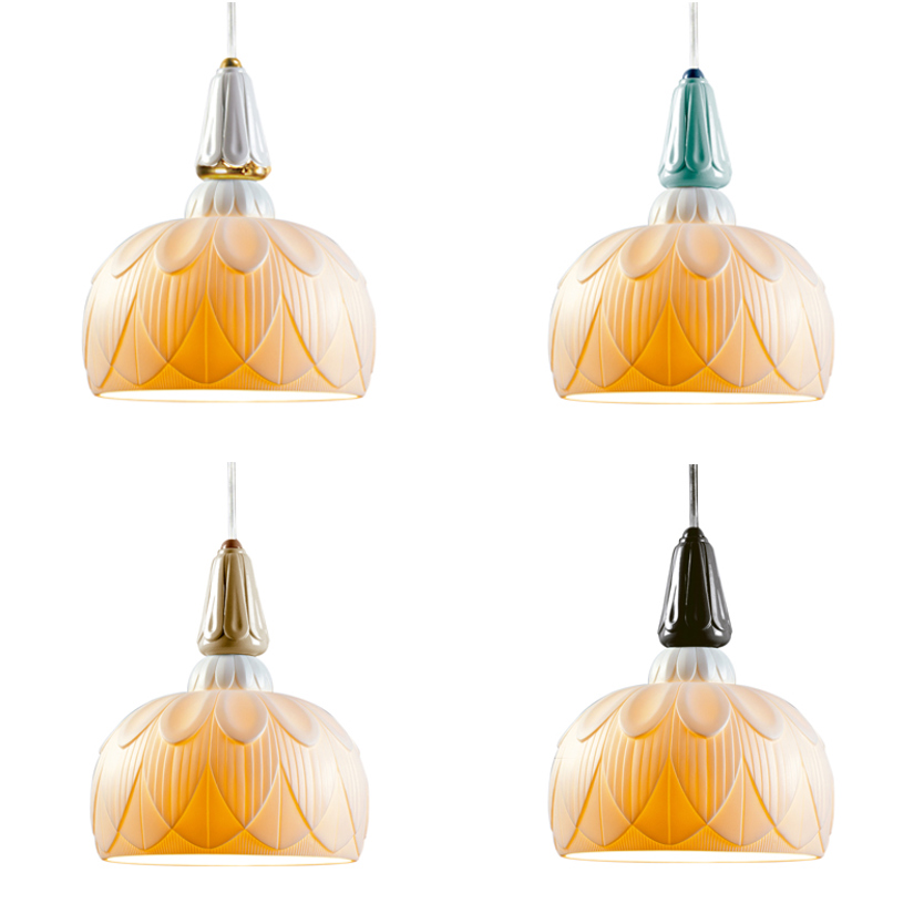 Product Code: 8E01023897 Light source: 1 x E27 15W LED (Max) | Not Incl. Materials: Porcelain, Metal Dimensions: Ø 230mm x H 260mm | 1950mm Max Hang Height Brand: Lladro Filtered through the optic of Art Deco, the Ivy & Seed collection's geometric forms have a soft, rounded finish that counteracts its cut glass edges. This collection draws inspiration from seeds, fresh water and warm light resulting in pieces adorned with bulbs, leaves, seeds and petals. Also available with various accent colours (pricing may vary). Rated IP20 suitable for indoor use. Dimmable with dimmable globe. Designed by Dept. Diseño y Decoración for Lladro and made in Spain. Please note that porcelain products are handmade and the exact size, colour and texture of each piece may vary. For trade enquiries, please contact us below. |