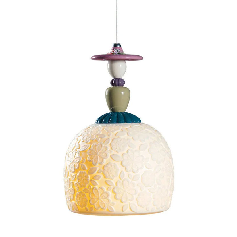 Product Code: 8L01023530 Light source: 1 x E27 15W LED (Max) | Not Incl. Materials: Porcelain, Metal Dimensions: Ø 200mm x H 310mm | 1950mm Max Hang Height Brand: Lladro The Mademoiselle collection is inspired by Lladró's romantic ladies, one of his most traditional motifs, to create contemporary and daring designs, full of color. The pieces combine opaque and translucent porcelain; white and colored, with matte and glossy parts. The Mademoiselle series is available in various designs, clusters and sizes (pricing varies). Rated IP20 suitable for indoor use. Dimmable with dimmable globe. Designed by Dept. Diseño y Decoración for Lladro and made in Spain. Please note that porcelain products are handmade and the exact size, colour and texture of each piece may vary. For trade enquiries, please contact us below. |