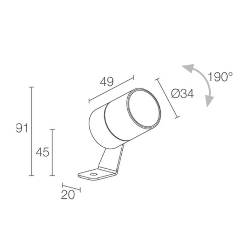 Product Code: 4LGN100015M5 Light source: 1 x 2.5W | 3000k | 124lm | 24V Materials: Stainless steel or anticorodal aluminium Dimensions: Ø 34mm x D 49mm Projector for outdoor applications. Body is aluminium or stainless steel in either stainless steel, anthracite, jasper green, cor-ten, black anodized, white, grey finishes; RAL finish on request. Beam options available are 14˚, 12˚, 19˚, 36˚, sharp 38˚, 58˚, 16˚x 36˚, 36˚x 16˚. Also available in 3.5W. Power supply 24V. IP66 Accessories not included Designed and made in Italy For trade enquiries, please contact us below. |