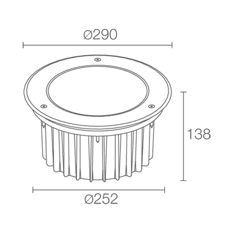 Product Code: 4LCS101015MI Light source: 1 x 37W | 3000k | 1619lm | 240V Materials: Aluminium, stainless steel Dimensions: Ø 290mm x D 138mm (depth of fitting only) Brand: Luce and Light Recessed uplight for outdoor applications. Body is die-cast aluminium with trim in stainless steel. Beam options available are 11˚, 14˚, 30˚, 37˚, 10˚x 45˚, adjustable 66˚x 11˚ or wall washer. Control systems available are 1-10V or on/off. Power supply 230V. IP67 or IP68 Accessories not included Designed and made in Italy